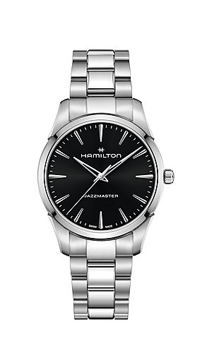 Sleek and versatile, the Jazzmaster Quartz 40mm with a black dial delivers timeless sophistication in a modern silhouette. Its ultra-flat case with brushed and polished finishing frames the minimalist design, while skeletonized hands add a contemporary edge. A classic choice for effortless style.